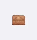The Dior Caro Dahlia wallet displays the iconic Cannage topstitching in a contemporary variation. Crafted in dark brandy supple calfskin, it has a CD signature on the front. The chic and spacious companion can be coordinated with other bags from the same line.