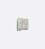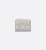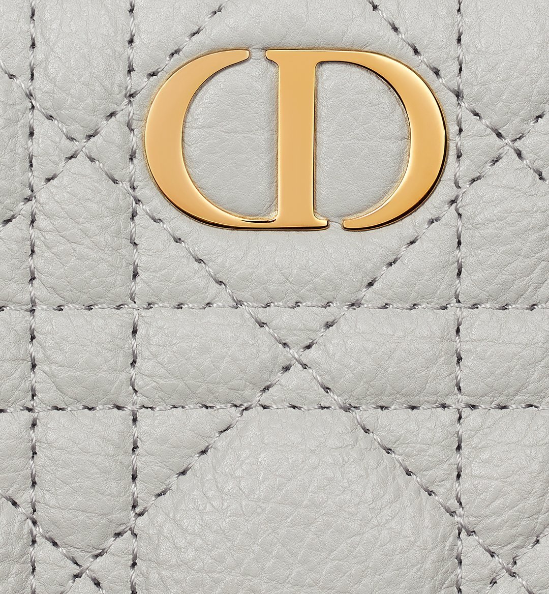 The Dior Caro Dahlia wallet displays the iconic Cannage topstitching in a contemporary variation. Crafted in cloud gray supple calfskin, it has a CD signature on the front. The chic and spacious companion can be coordinated with other bags from the same line.