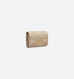 The Dior Caro Glycine wallet is distinguished by its compact and practical design. Crafted in sand-colored supple calfskin with Cannage stitching, it is enhanced by the CD signature on the front. Accommodating all of the essentials, the refined accessory will fit anywhere and can be paired with other Dior Caro creations.