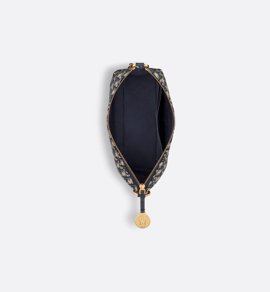 New for Summer 2024, the Diorstar hobo bag with chain has a practical, modern look. Crafted in blue Dior Oblique jacquard, it features a supple silhouette and spacious compartment. Its design is enhanced by a zip closure embellished with a medallion engraved with the Christian Dior Paris signature and a star, the House’s flagship symbol, while discreet CD studs adorn the sides. The interior includes card slots, and a leather insert on the adjustable CD chain link shoulder strap allows the bag to be worn comfortably over the shoulder.