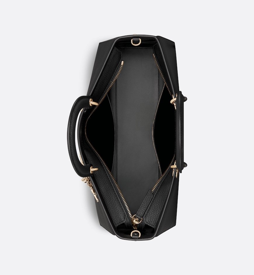 New for Summer 2024, the Lady D-Sire bag draws inspiration from the signature elegance of the Lady Dior design. Reimagined with a casual style for an urban look, the lightweight black grained Taurillon leather feels soft to the touch yet offers excellent durability. The extra-large style is embellished with pale gold-finish metal D.I.O.R. charms that illuminate the silhouette. Showcasing a removable, thin leather shoulder strap, the unique bag can be carried by hand or over the shoulder.
