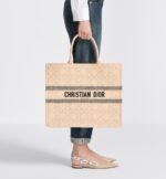 Part of the Dioriviera capsule collection, the Dior Book Tote is a House classic designed by Maria Grazia Chiuri, Creative Director of Christian Dior. Created to hold the daily essentials, the style is crafted in natural raffia with the Cannage motif, and is further enhanced by a Christian Dior Paris signature on the front. The large tote exemplifies the House’s signature savoir-faire and may be carried by hand or worn over the shoulder.