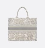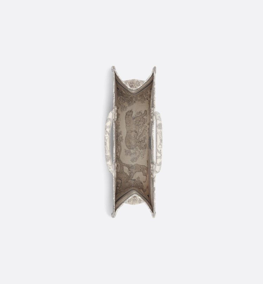 Introduced by Maria Grazia Chiuri, Creative Director of Christian Dior, the Dior Book Tote has become a staple of the Dior aesthetic. Designed to hold all the daily essentials, the style is fully embroidered with the ecru and gray Toile de Jouy motif. Adorned with the Christian Dior Paris signature on the front, the large tote exemplifies the House’s savoir-faire and may be carried by hand or worn over the shoulder.