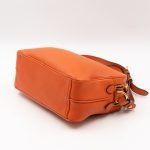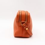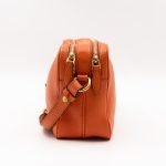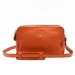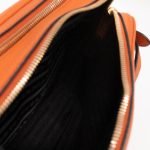 This is a Prada Double Zip Camera Bag. Made in orange phenix vitello leather. This bag has a shoulder strap for comfortable crossbody use. On front a Prada logo in gold-tone. It has double zip and each zipper opens to reveal a spacious compartment. Great for daily use for your phone, cards, and keys.