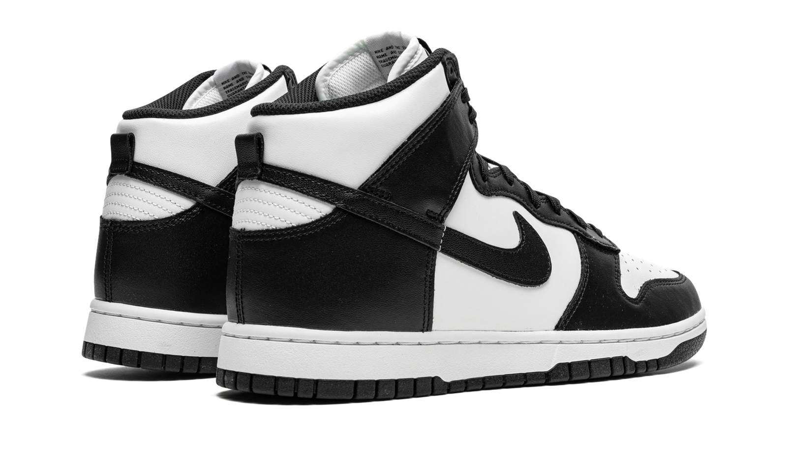 The Nike Dunk High “Black/White” or “Panda” is a two-tone, white-and-black colorway of the vintage basketball shoe that was released in January 2022. An all-time classic style, the black-and-white Dunk features white leather on the perforated toe, mid-panel, collar, and heel. The neutral-colored base is contrasted with black leather overlays and Swoosh branding. The shoe’s two-tone, appearance continues with a black interior lining, a white nylon tongue, and white nylon tongue tag with black “Nike” and Swoosh branding. Black laces, and a white midsole and black outsole finish off the look. Release date: January 27, 2022