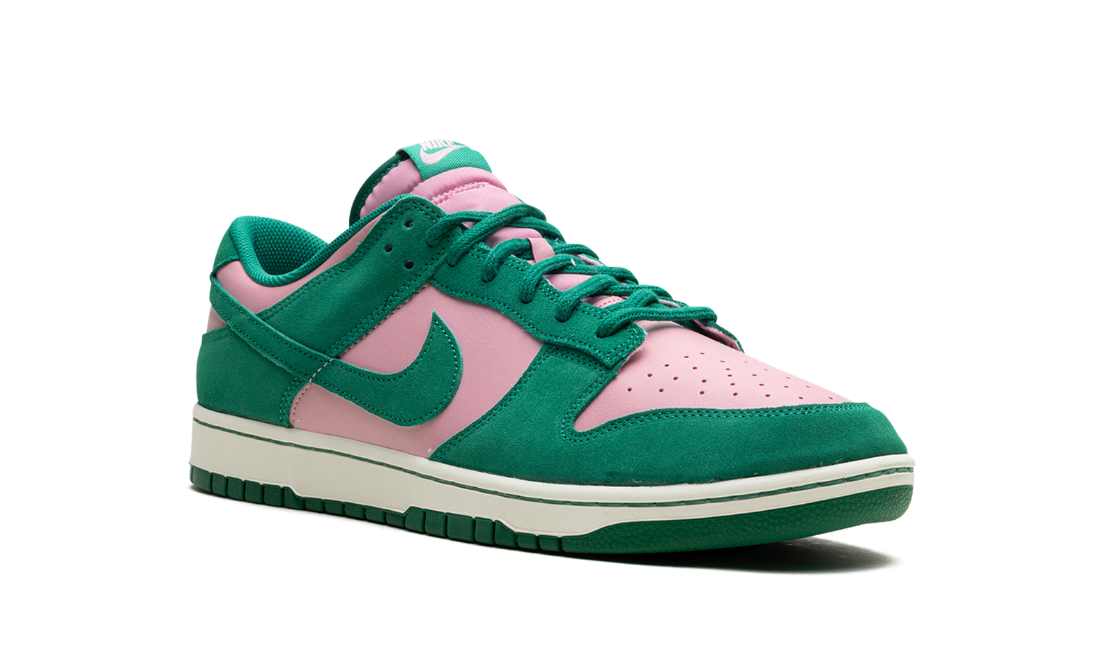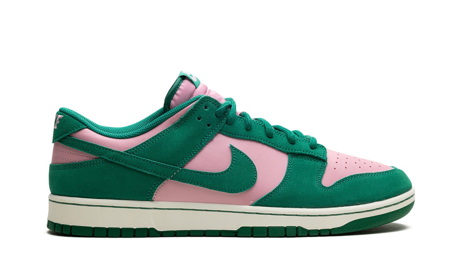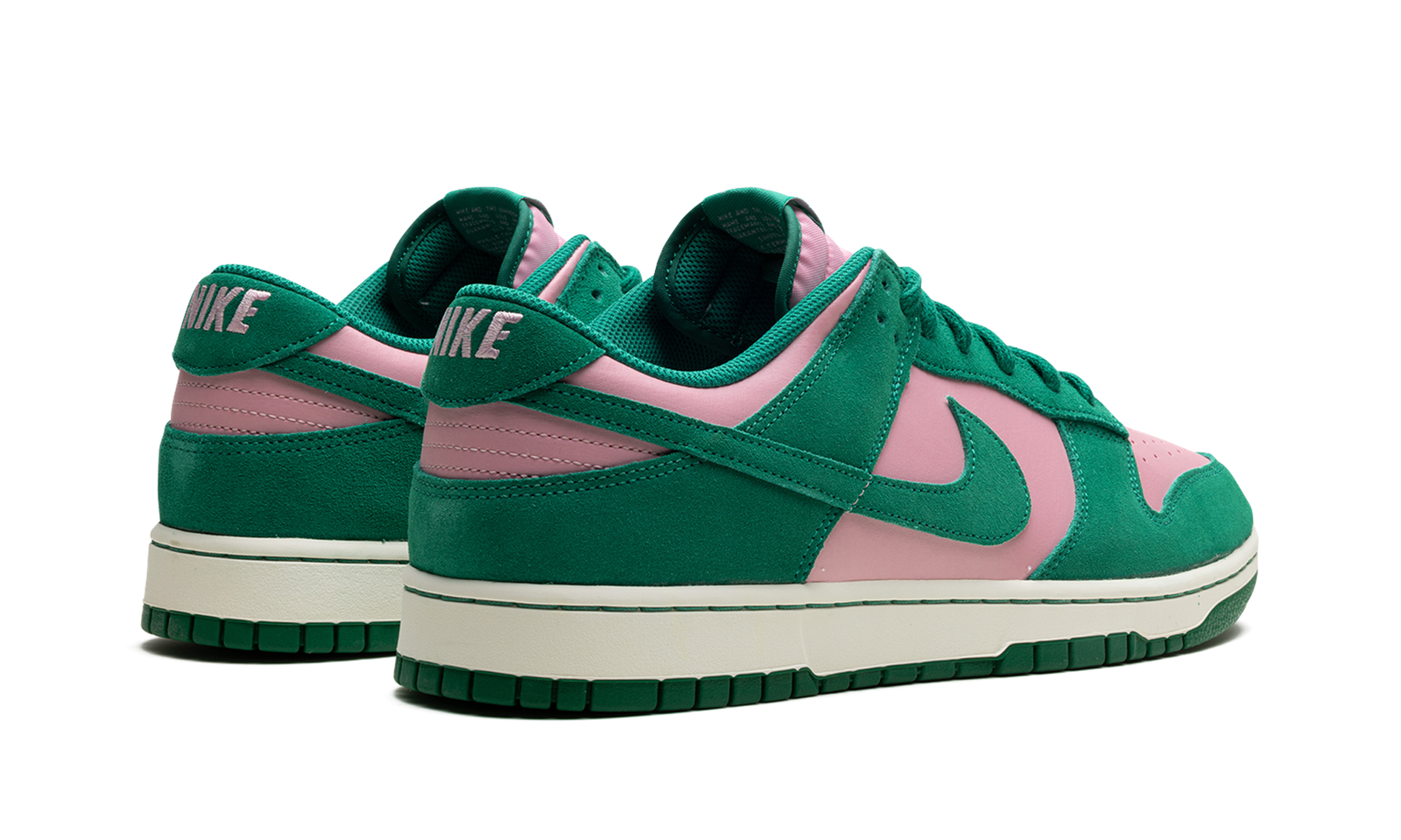 The Nike Dunk Low “Back 9 – Masters” is a colorway of the retro basketball shoe with a two-tone, green-and-pink color scheme. The upper is complete with a Medium Soft Pink leather base with Malachite-colored suede overlays and Swoosh branding. Classic “Nike” branding is embroidered on the heel tab. Another “Nike” logo can be found on the tongue tag above a Swoosh. Underfoot, the shoe’s Sail midsole has an aged look, while a Malachite rubber outsole ties the look together. Release date: April 9, 2024