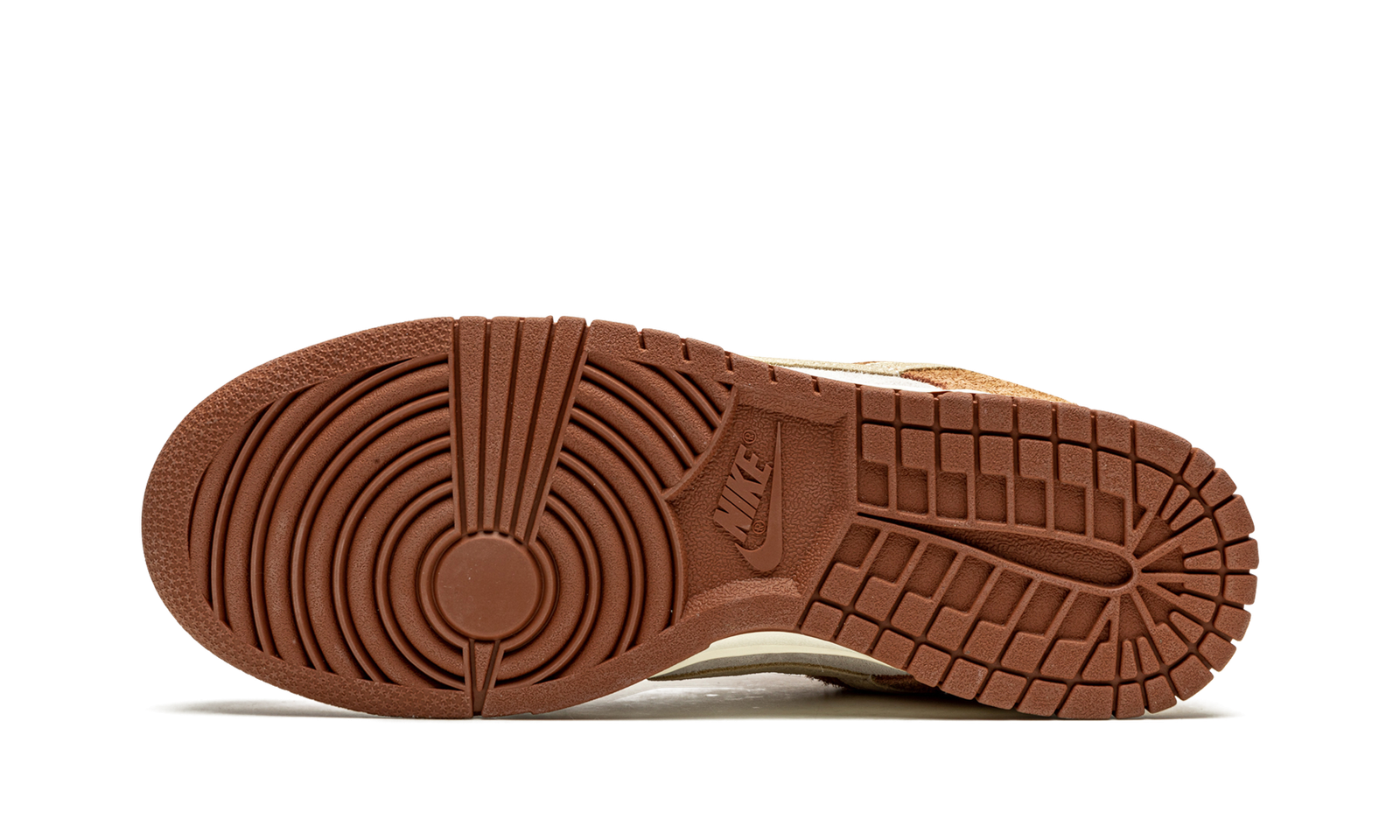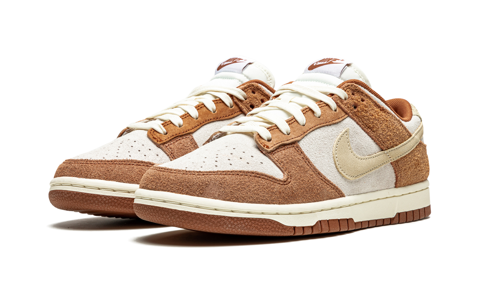 The Nike Dunk Low PRM “Medium Curry” dressed the former performance basketball and current lifestyle shoe in an autumnal colorway. One of the many strengths of the Dunk is its ability to combine different colors and textures together in an appealing way, and the “Medium Curry” is no exception to the sentiment. Hairy brown suede panels on the forefoot, eyelets, collar, and heel stand out against the white leather base. A shade of cream called “Fossil” is applied to the suede Swoosh and the heel tab with brown “Nike” embroidery. Brown “Nike” branding resides on the tongue tag and a white midsole and brown outsole put the finishing touches on yet another ultra fresh Nike Dunk.