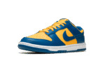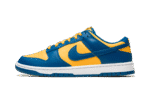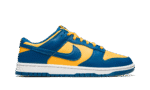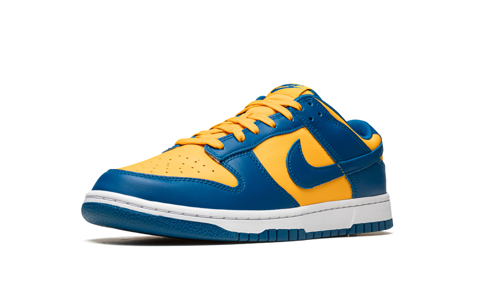 The Nike Dunk Low “UCLA” is an August 2022 release of the retro basketball shoe that draws inspiration from the UCLA Bruins college basketball team’s uniforms. Although not officially tied to UCLA, this two-tone, blue-and-yellow Dunk nonetheless shows appreciation to the storied program. The perforated toe, mid-panel, collar, and heel are designed in yellow leather. Blue Jay-colored leather can be found on the overlay panels and on the Swoosh branding on either side of the shoe. Yellow “Nike” branding is embroidered on the heel, and blue “Nike” and Swoosh logos are found on the yellow nylon tongue tag. Underfoot, a white rubber midsole and blue rubber outsole complete the look. Release date: August 9, 2022