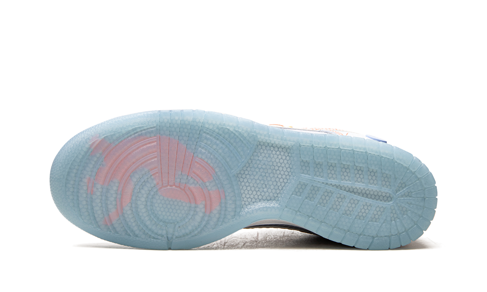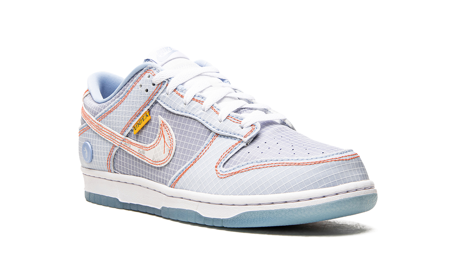 The Union x Nike Dunk Low “Hyper Royal” is a collaboration between Chris Gibbs’s Los Angeles fashion boutique and Nike on the vintage basketball shoe. Perhaps best known for its Air Jordan collaborations since the 2010s, Union LA—or just Union for short—is a longtime partner of Nike, having worked with the brand in various instances dating back to the early 2000s. Here, the “Hyper Royal” is one of three colorways of the Dunk from Union’s 2022 collaboration with Nike. The shoe features a gridded, ripstop-nylon-like material on its light blue upper. Each overlay is outlined in orange. A small yellow “UN/LA” hang tag appears on the lateral side of the midfoot overlay and the brand’s “Halo” skateboarding logo is found on the heel and the forefoot of the outsole. The shoe features additional hang tags that allude to baggage claim tags. Underfoot, a white rubber midsole is paired with an icy, semi-translucent outsole.