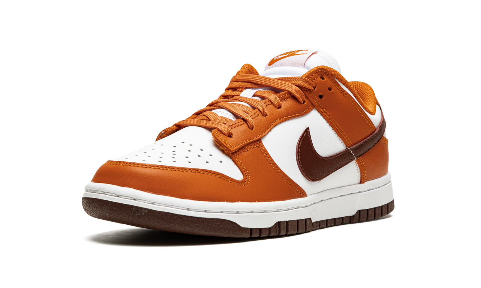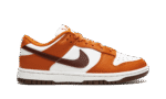 The Women’s Nike Dunk Low “Bronze Eclipse” is a women’s-exclusive colorway of the vintage basketball shoe that arrives in unique, earth tone colors for a versatile, always-in-style look. Reminiscent of Dunk colorways from the early-to-mid 2000s, the ‘Bronze Eclipse” features a white leather base with contrasting Sport Spice-colored leather overlays on the forefoot, eyelets, collar, and heel. A Bronze Eclipse leather Swoosh resides on either side of the shoe. A classic “Nike” logo is embroidered on the heel and burnt orange-colored “Nike” and Swoosh branding is printed on the white tag on the white nylon tongue. Burnt Orange laces complement the shoe’s autumn-ready appearance. Release date: November 24, 2021
