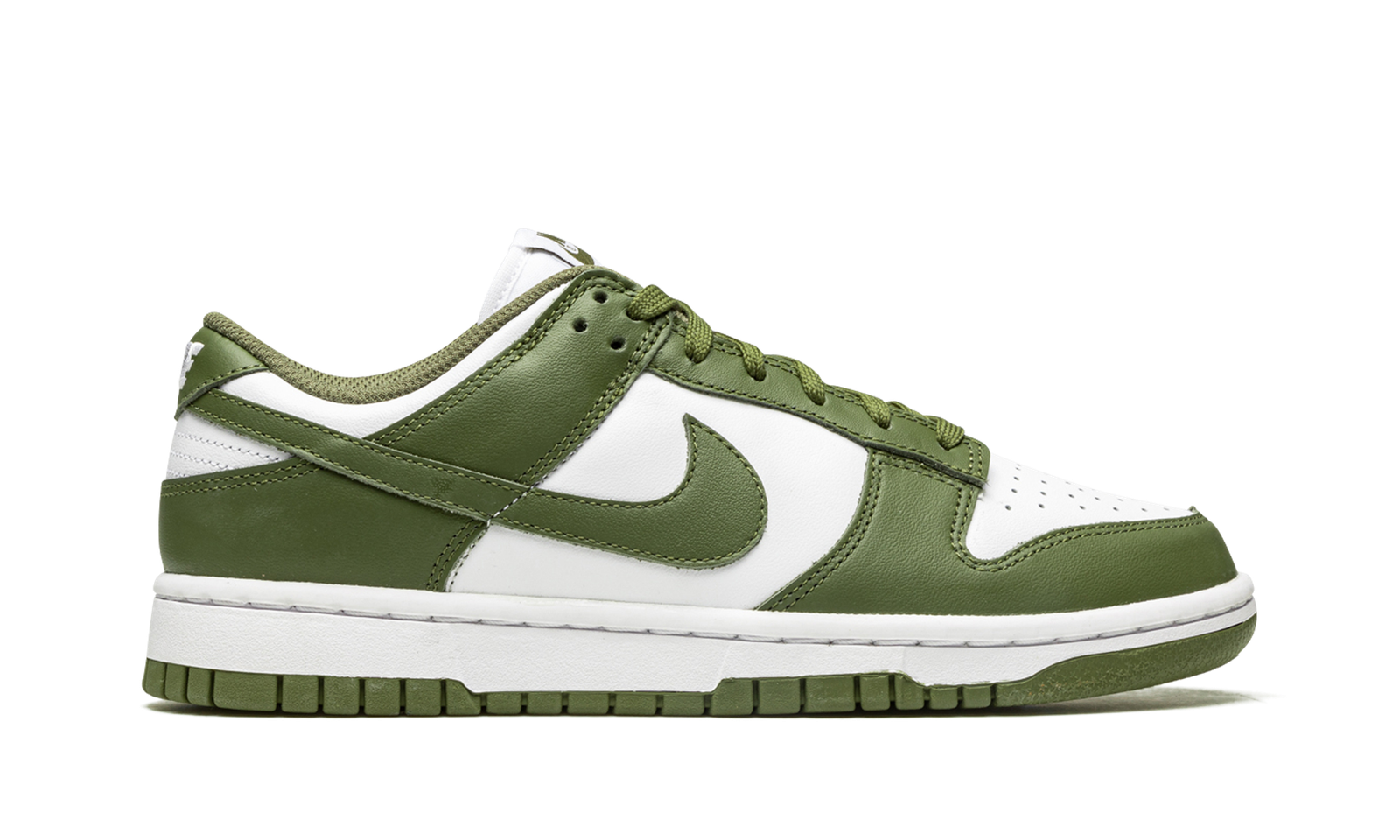 The Women’s Nike Dunk Low “Medium Olive” is a women’s-exclusive release that excels in versatility with its use of neutral and earth tone colors. The upper features white leather on the perforated toe, mid-panel, and collar. Contrasting Medium Olive-colored leather appears on the overlays and on the Swoosh logo on either side. A white “Nike” detail is embroidered on the heel. Additional “Nike” and Swoosh branding can be found on the olive green tongue tag. Release date: September 9, 2022