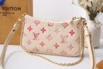 This edition of the Easy Pouch on Strap belongs to the Sunrise Aquarelle collection. It is crafted from Monogram Empreinte leather, which is digitally printed with a gradation of oranges and pinks evoking a watercolor painting. Large enough for everyday essentials, this bag has a removable chain and a removable, adjustable strap for shoulder or cross-body carry.