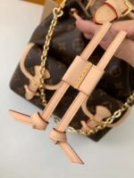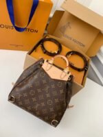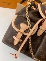 Made from Monogram canvas with leather trim, the super-cute, super-functional Excursion PM backpack has a design clearly influenced by the world of hiking. The main compartment closes with an adjustable sliding buckle and there are two pockets with buckles on the front. A gold-color chain, in addition to the top handle, enable different carries.