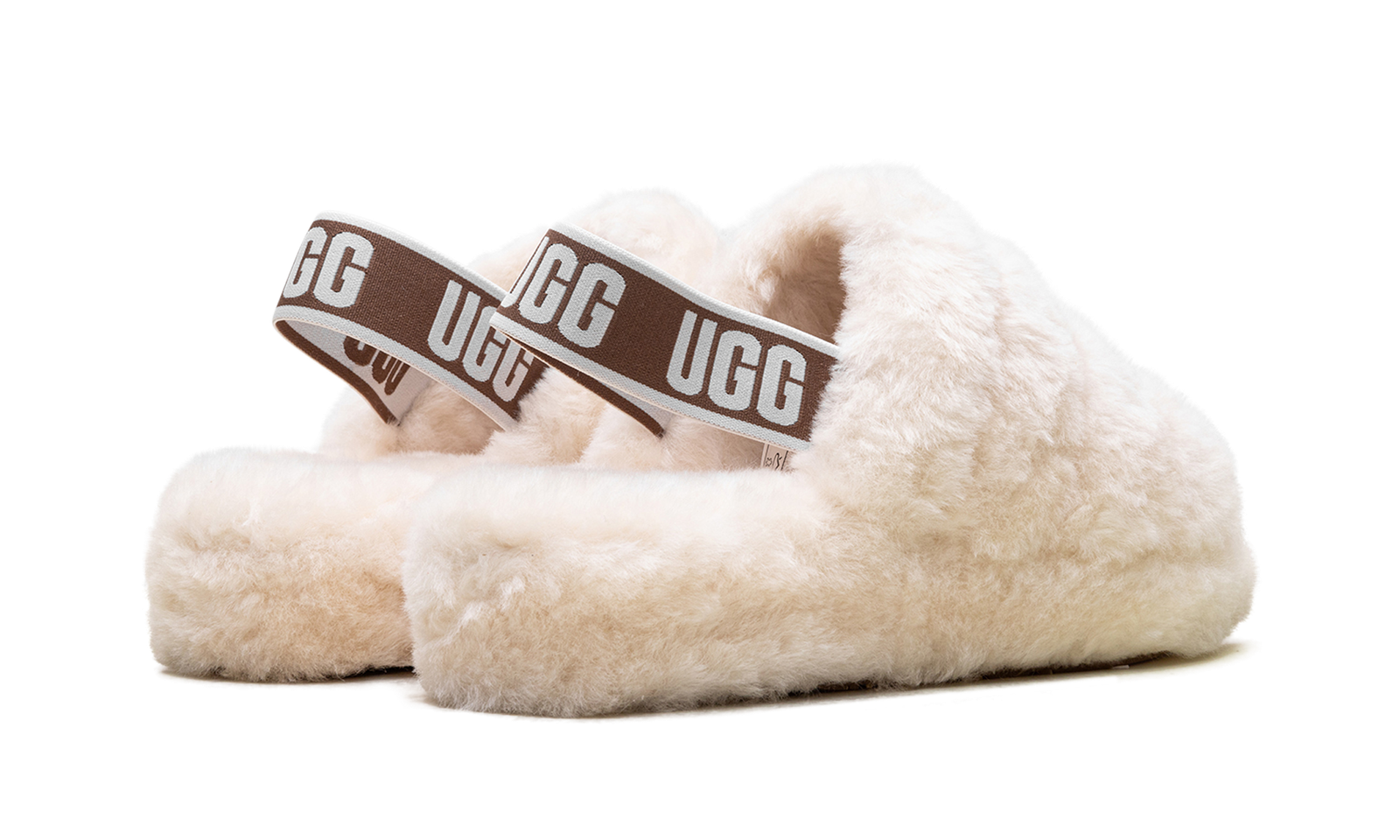 Indulge in plush perfection with the UGG Fluff Yeah Slide Wmns “Beige,” often called the ‘Platform Cloud!’ This wildly popular slide combines the comfort of a slipper with the practicality of a sandal, making it a true statement shoe. It features a soft sheepskin upper and lining and a secured fit thanks to the branded elastic slingback strap. The lightweight 1.5-inch platform outsole adds fashionable height and is durable for both cozy indoor lounging and stepping out in confidence.