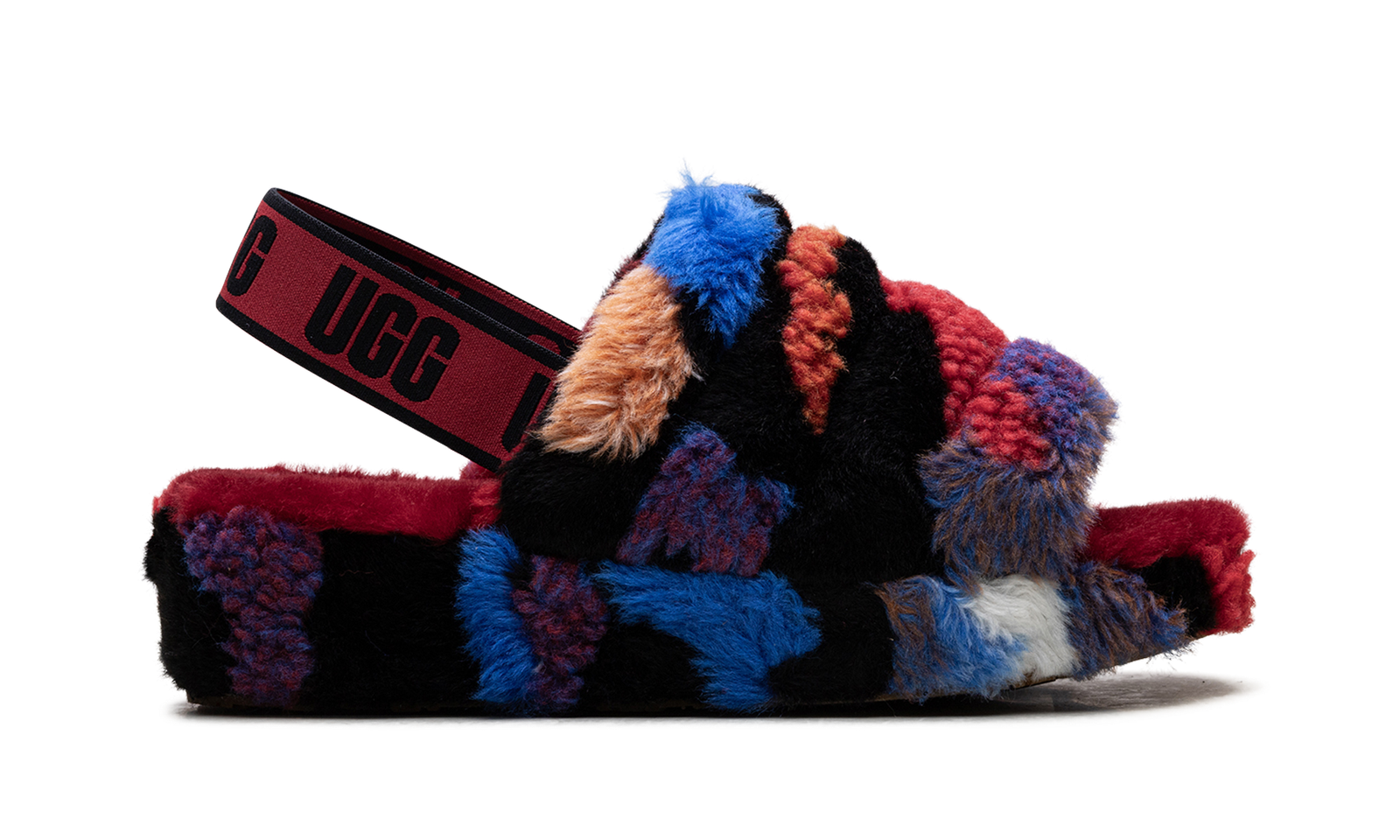 Make a loud statement in cozy comfort with the UGG Fluff Yeah Slide WMNS “Cali Collage Red”, the unapologetic Statement Fluff. This bold women’s slipper features a vibrant, multicolored sheepskin upper, wrapping your foot in incredible softness and luxury. The lightweight platform sole not only elevates your look but also ensures comfortable indoor-outdoor traction. An elastic heel strap secures the slide, making it the perfect piece for relaxing at home or stepping out for a quick, fabulous errand.