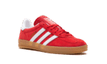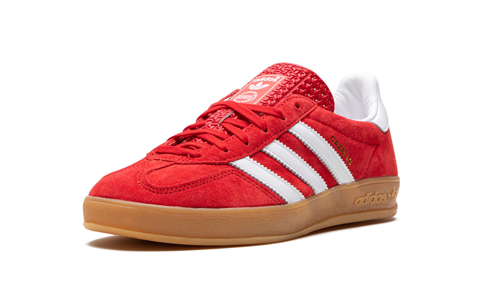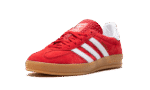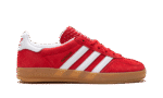 The adidas Gazelle Indoor “Scarlet Red” is a mostly all-red colorway of the retro indoor soccer shoe by the German footwear company. The upper features a Scarlet Red suede construction with a tonal suede overlay on the toe. The Three Stripes branding on each side of the shoe is designed in white leather. A gold “Samba” logo can be found on the lateral side of the mid-panel. Red adidas Trefoil branding is seen on the white leather heel tab and an adidas graphic appears on the tongue. A gum sole completes the look.