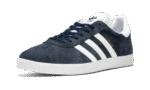 The adidas Gazelle “Navy” is a navy-based colorway of the classic low-top sneaker. The adidas Gazelle is one of the footwear brand’s most essential sneakers and, especially in the “Navy” colorway, one of its most versatile. The shoe features a navy blue suede construction with white leather Three Stripes branding on the sides. A white printed “Gazelle” logo is seen on the lateral side. Adidas TreFoil branding is located on the heel and on the tongue. An all-white rubber sole unit completes the look.