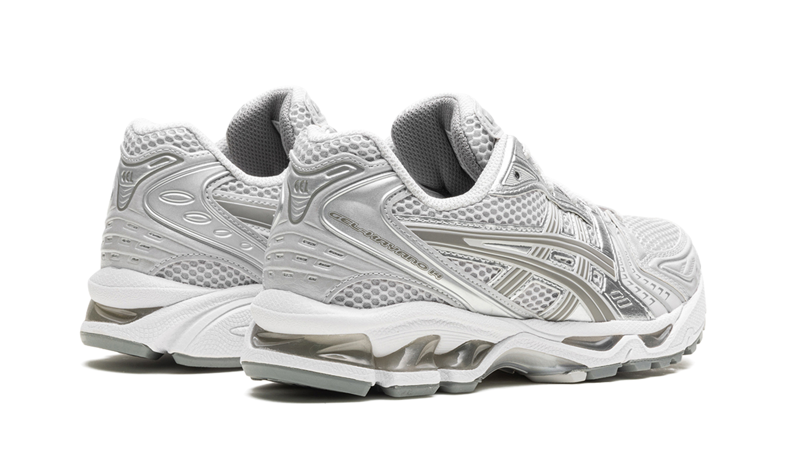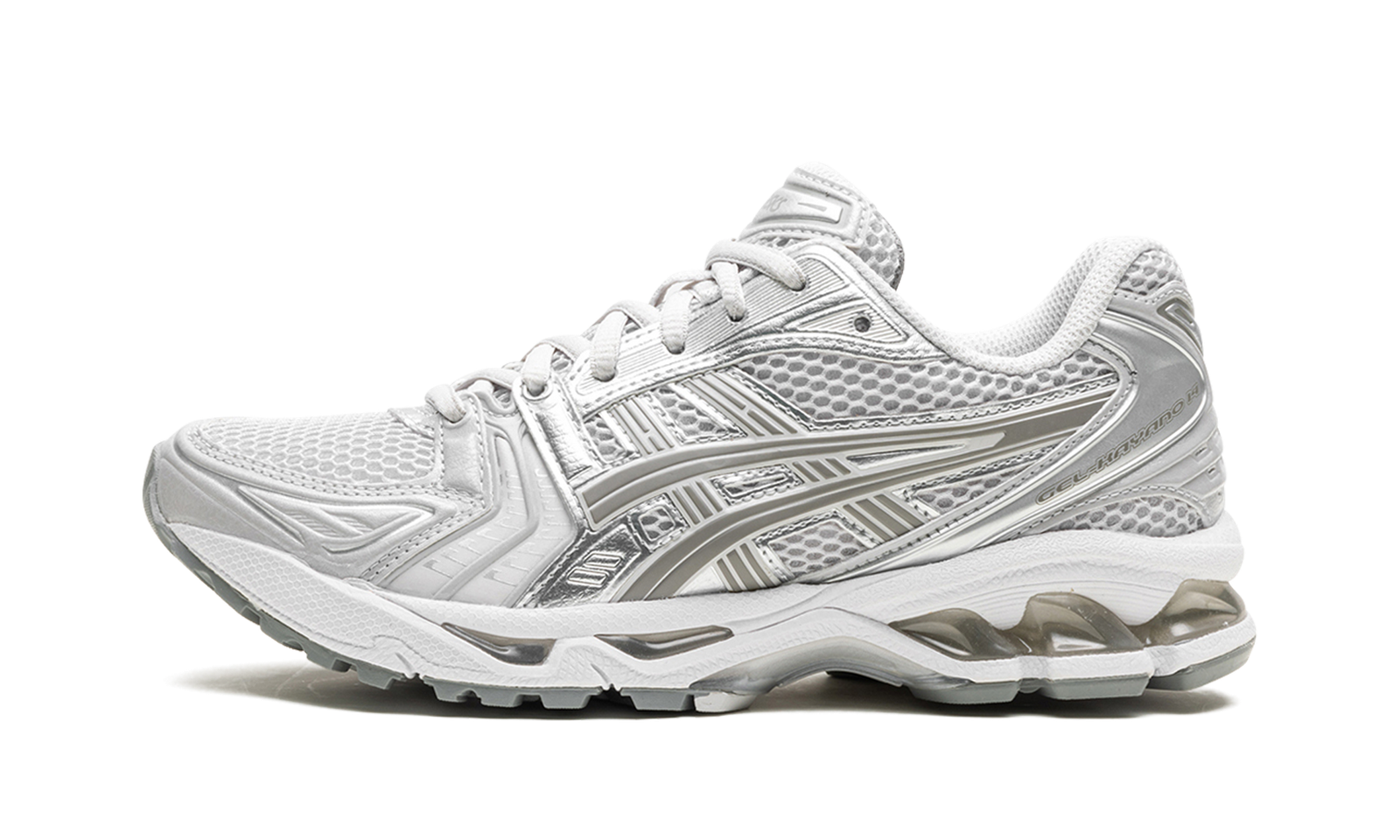 The Women’s ASICS Gel-Kayano 14 “Cloud Grey” is a women’s-exclusive colorway of the retro shoe with a grey-and-silver appearance. The “Cloud Grey” updates the Gel-Kayano 14 with a versatile look that includes an appealing blend of neutral tones and flashy metallic silver paneling. A “Gel-Kayano” logo appears on the lateral side of the left shoe’s heel and “ASICS” branding is seen on the tongue. The Y2K-style shoe is mounted on a techy looking midsole that features GEL cushioning technology.