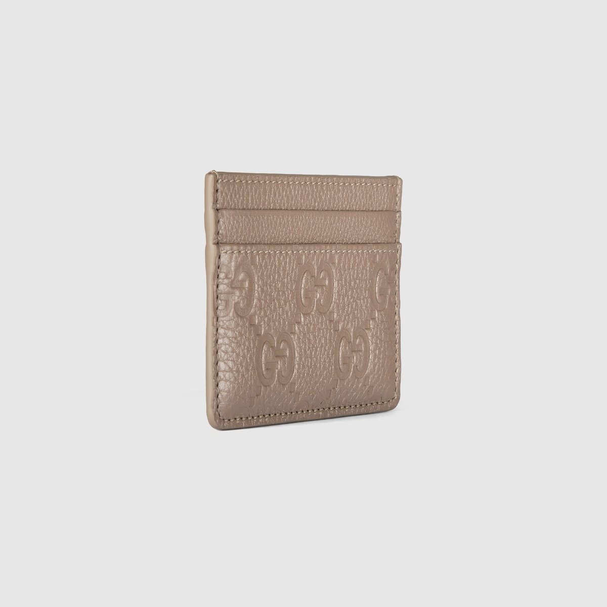 Reinforcing the timelessness of the GG motif, various small accessories spotlight the pattern in a soft-to-touch grainy leather. Bringing contrasting textures to the latest collection, the range is also available in a variety of neutral and pastel tones. This GG Emblem card case appears in taupe GG grainy leather.