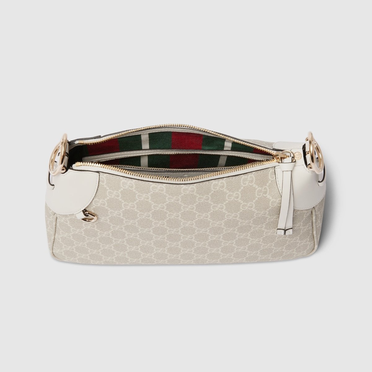 The new GG Emblem collection reinterprets the House??s history of elegance and craftsmanship. This medium shoulder bag features an additional D-ring for detachable items.