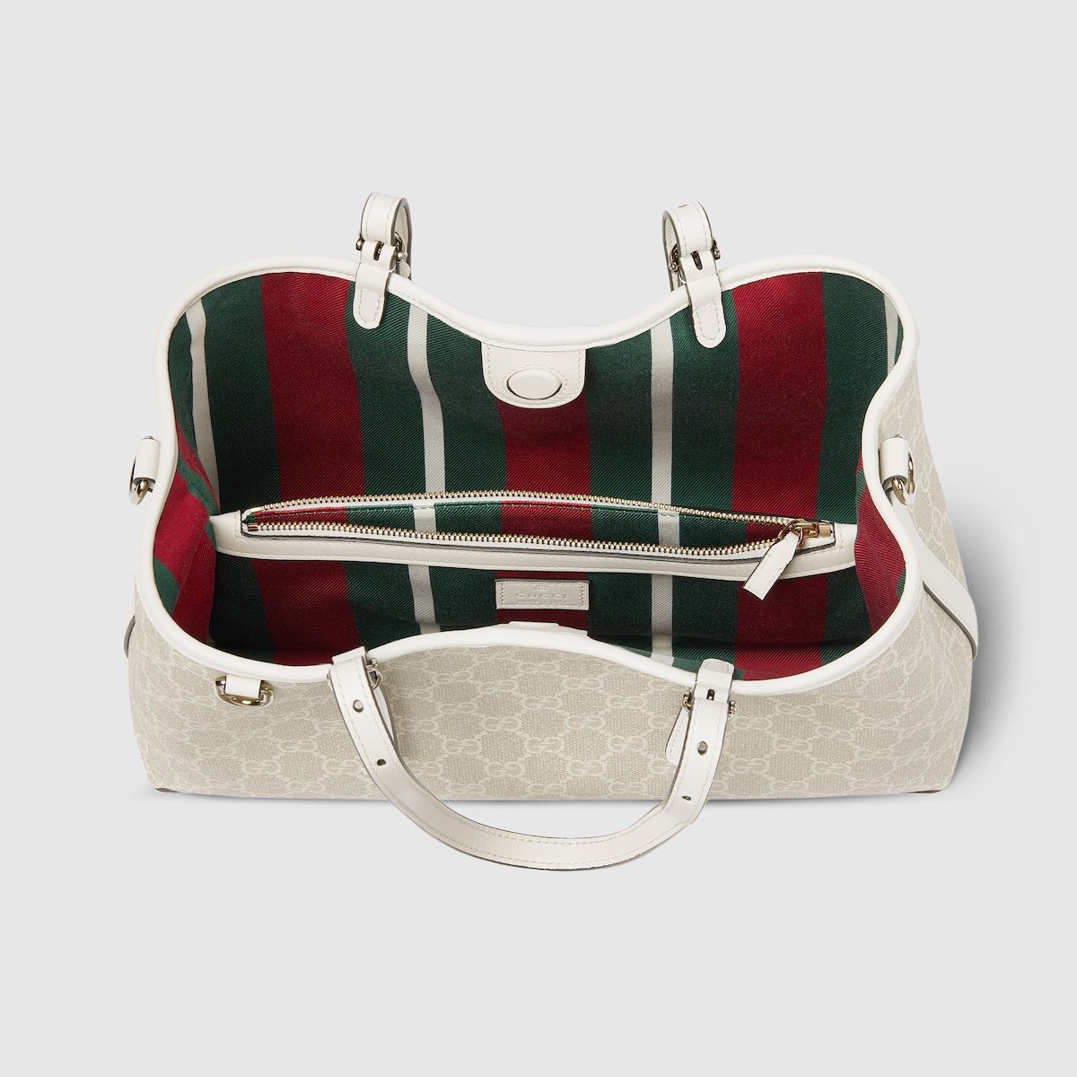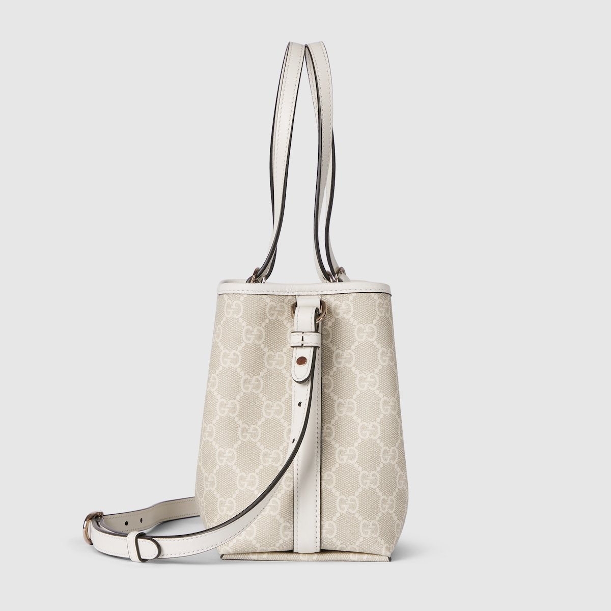 The new GG Emblem collection reinterprets the House??s history of elegance and craftsmanship. This small tote bag features numbered notches on the adjustable top handles, inspired by the equestrian world.
