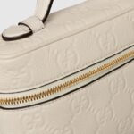 Reinforcing the timelessness of the GG motif, various small accessories spotlight the pattern in a soft-to-touch grainy leather. Bringing contrasting textures to the latest collection, the range is also available in a variety of neutral and pastel tones. This GG Emblem super mini bag appears in ivory GG grainy leather.