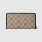 The GG Emblem collection reinterprets signature motifs through creativity and innovative functions , and is envisioned to be cherished for years to come. Introduced in the latest line of small accessories, this beige and dark brown zip around wallet is crafted from the new GG Monogram fabric. Featuring multiple compartments, it is completed by a contrasting black leather trim.