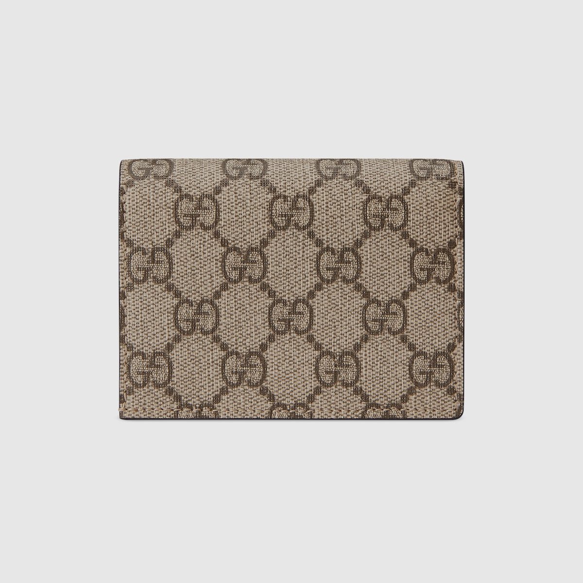 Taken from the ’70s archives, the Double G continues to define the GG Marmont line. Here, this card case wallet is crafted from beige and ebony GG Supreme canvas with dusty pink leather details.