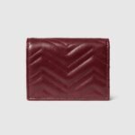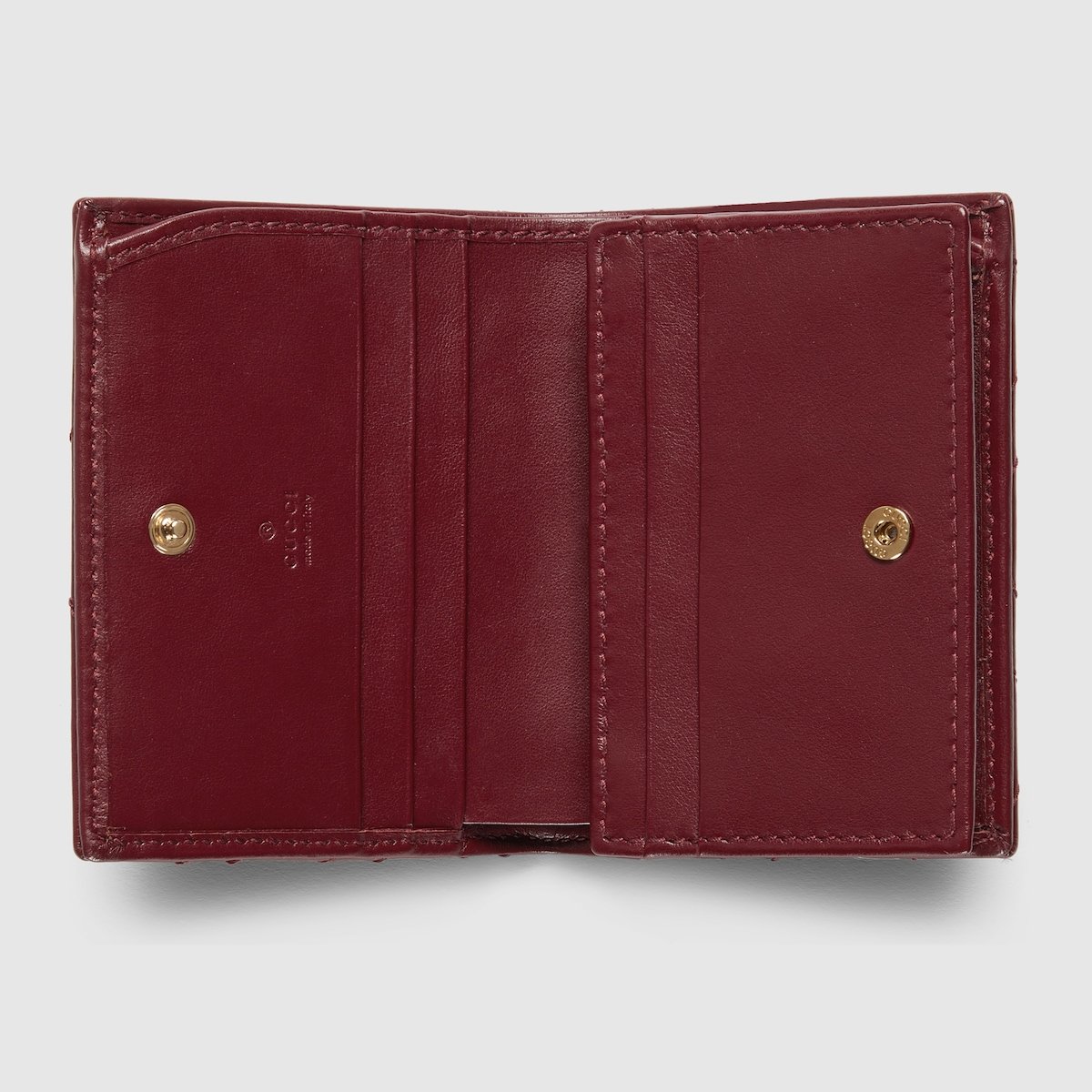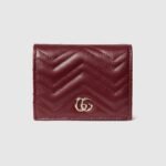 This GG Marmont foldable card case is crafted from the new Gucci Rosso Ancora red matelass?? chevron leather. The signature Double G hardware in a lighter gold-toned defines this accessory, complete with five card slots.