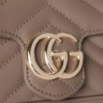 Embellished with the archival Double G logo, first introduced in the 1970s, the GG Marmont line has established itself as a signature style of the House. The two capital letters refer to the historic emblem, recognizable by the partially overlapping hardware on this bag front. Crafted from taupe matelass?? leather, the elegant small accessory is evocative of Florentine craftsmanship.