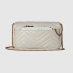 This GG Marmont mini bag is crafted from a light grey matelass?? chevron leather. The signature Double G hardware in antique gold-toned defines the accessory, while a detachable leather card case completes the style.