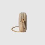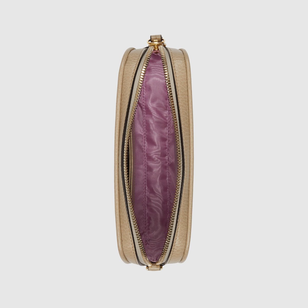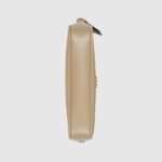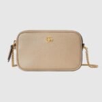 The GG Marmont collection is defined by the emblematic Double G gold-toned hardware, a contemporary take on a Gucci archival motif. This beige leather super mini bag with a chain strap and zip closure reveals two card slots inside for effortless organization.
