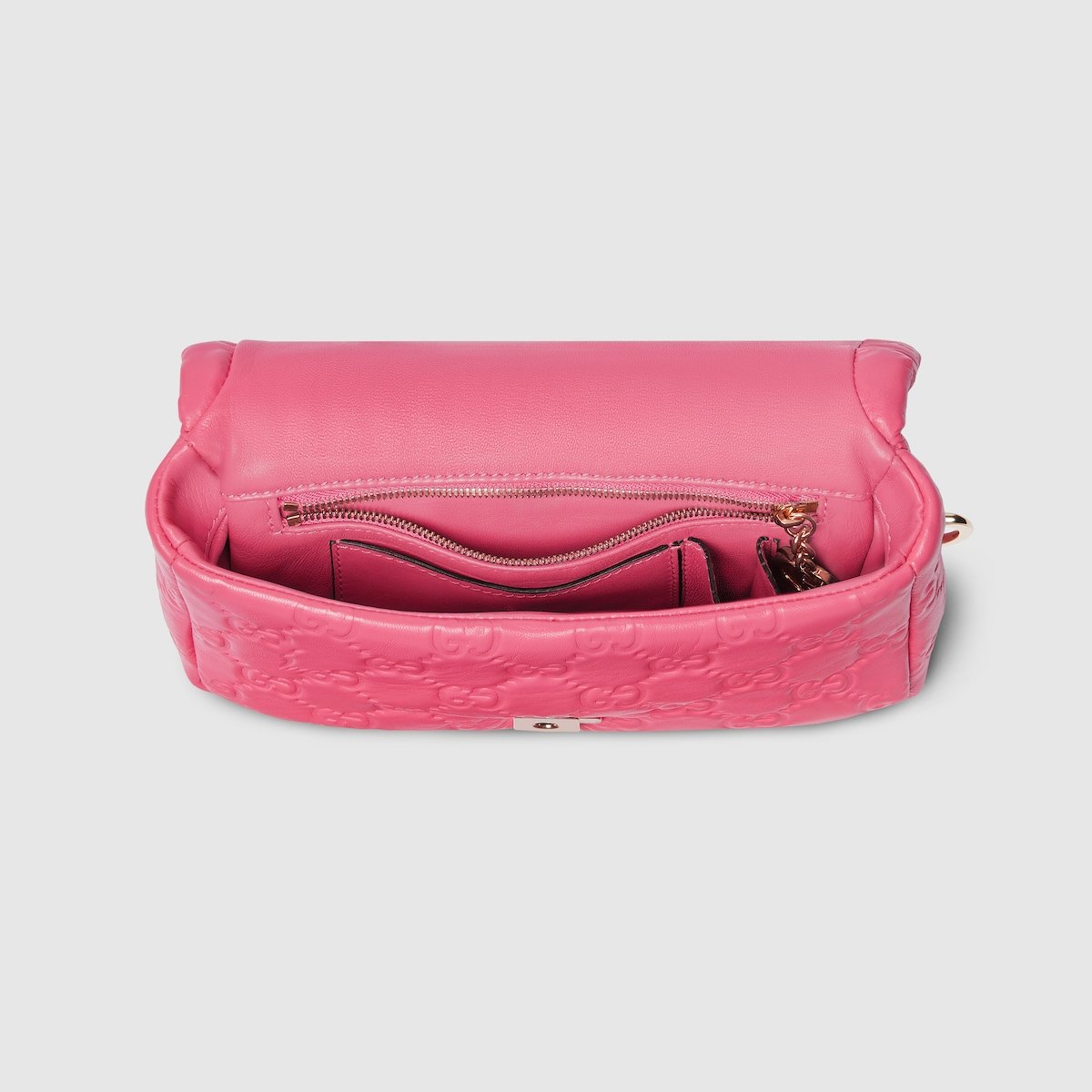 The GG Milano top handle bag debuted at the Fall Winter 2024 fashion show during Milan Fashion Week, paying tribute to the city which inspired the design. It features a new Double G hardware, and the puffy GG embossed leather has a soft and silky touch. The chain strap allows the bag to be worn crossybody or on the shoulder.