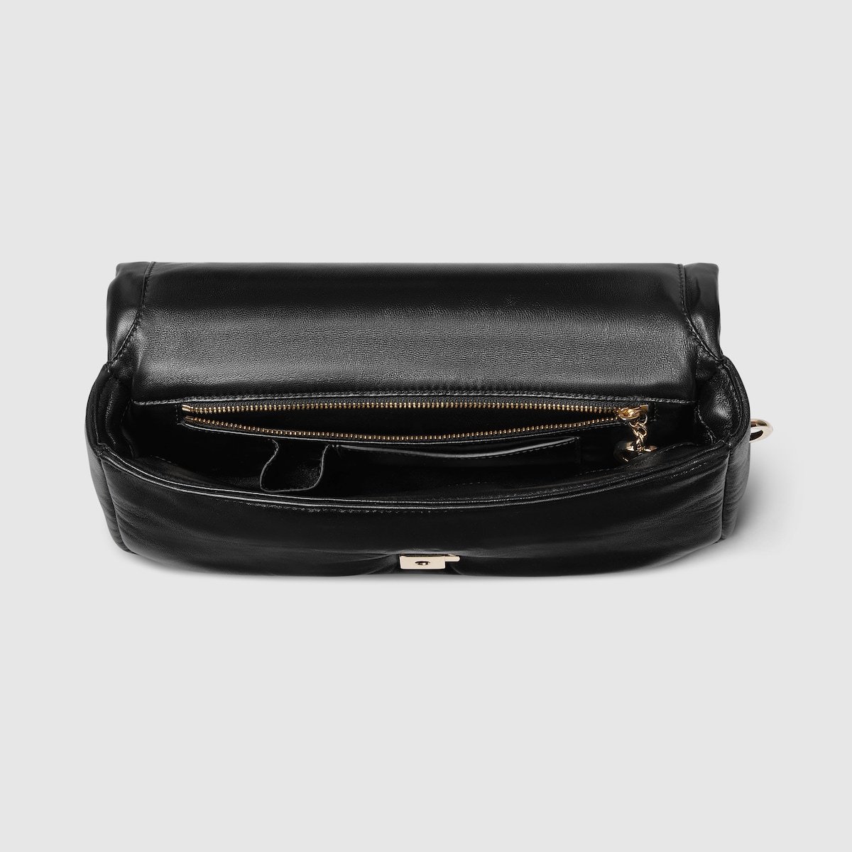 The GG Milano top handle bag debuted at the Fall Winter 2024 fashion show during Milan Fashion Week, paying tribute to the city which inspired the design. It features a new Double G hardware, and the puffy leather has a soft and silky touch. The chain strap allows the bag to be worn crossybody or on the shoulder.