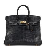 Hermes Birkin 25 Black Matte Alligator Gold Hardware