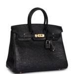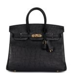 Hermes Birkin 25 Black Ostrich Gold Hardware