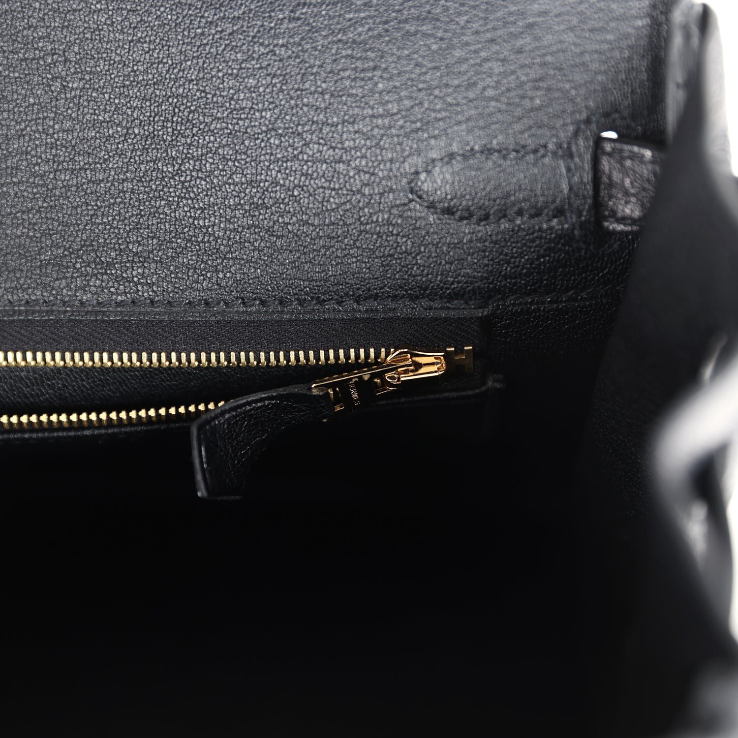 The interior is lined with Black chevre and has a zip pocket with an Hermès engraved zipper pull and an open pocket on the opposite side.