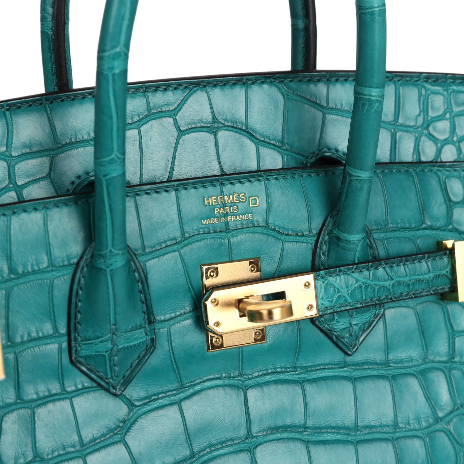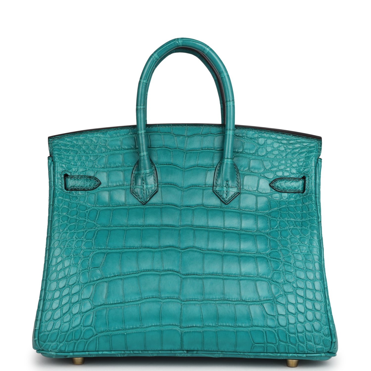 Hermes Birkin 25 Bleu Paon Matte Alligator Gold Hardware
