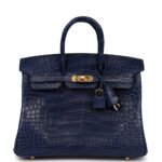 Hermes Birkin 25 Bleu Saphir Matte Alligator Gold Hardware