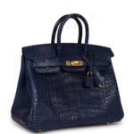 Hermes Birkin 25 Bleu Royal Matte Porosus Crocodile Gold Hardware