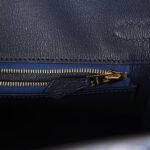 The interior is lined with Bleu Saphir Chevre and has one zip pocket with an Hermès engraved zipper pull and an open pocket on the opposite side.