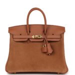 Hermes Birkin 25 Chamois Grizzly and Gold Swift Gold Hardware