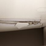 The interior is lined with gris palechevre and has one zip pocket with an Hermès engraved zipper pull and an open pocket on the opposite side.