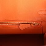 The interior is lined withOrange chevre and has a zip pocket with an Hermès engraved zipper pull and an open pocket on the opposite side.