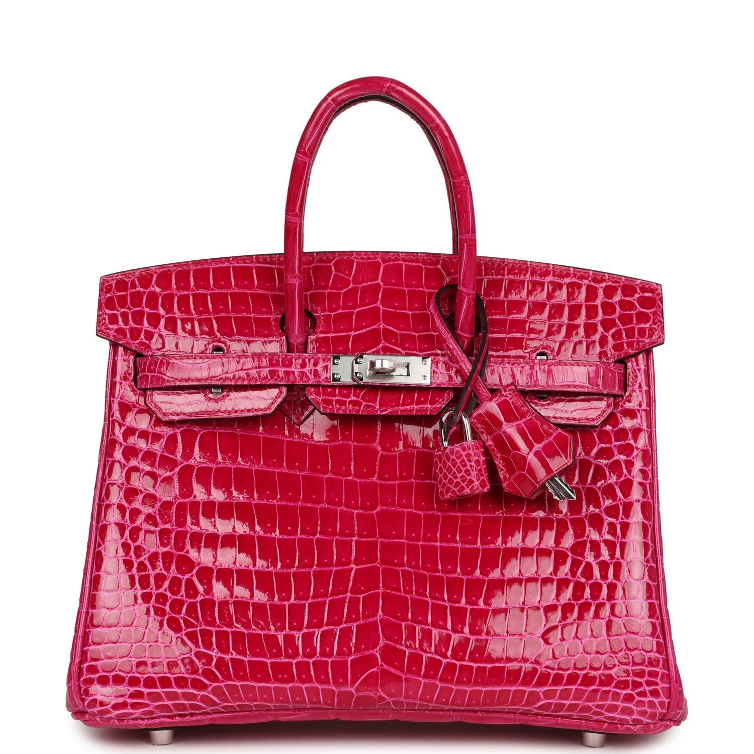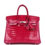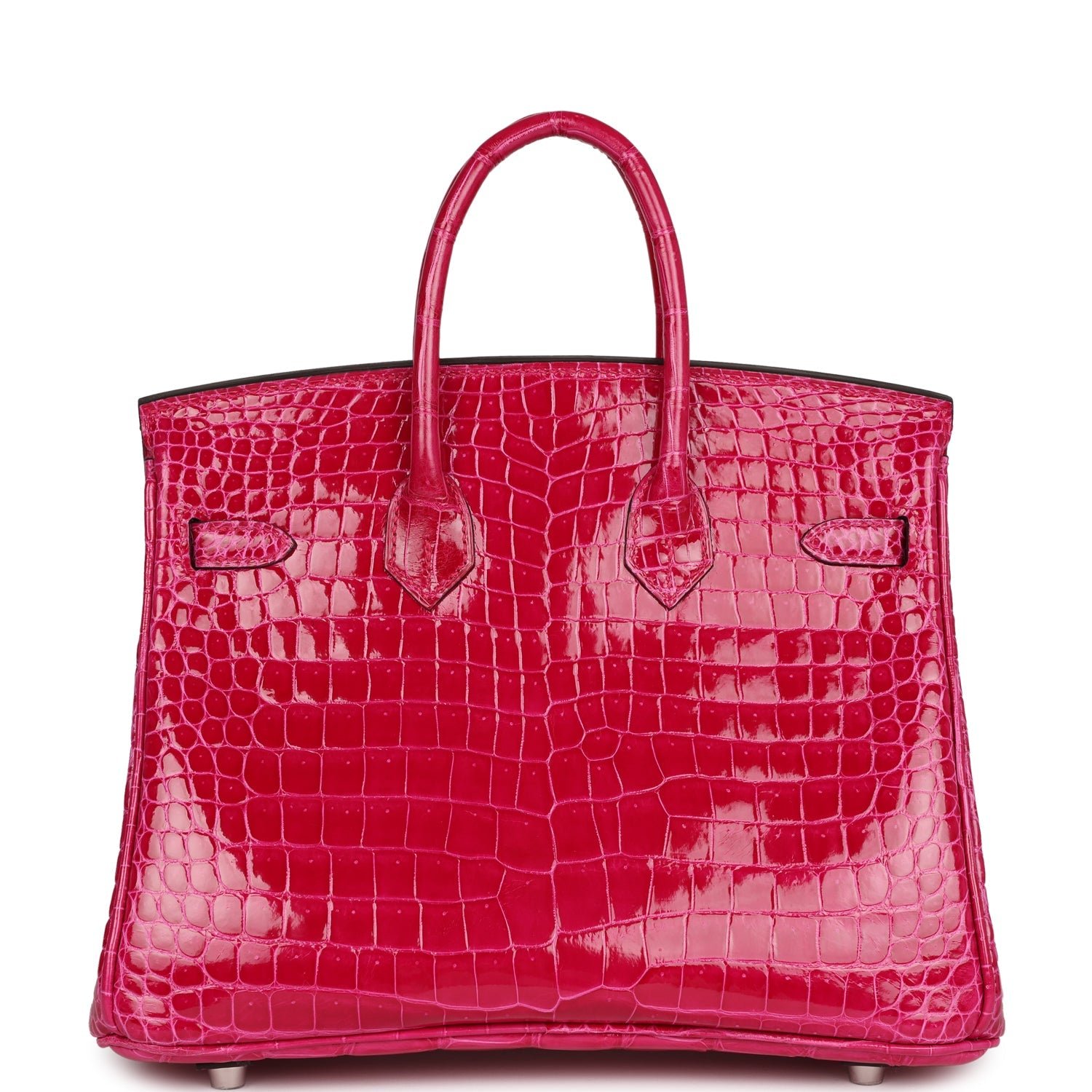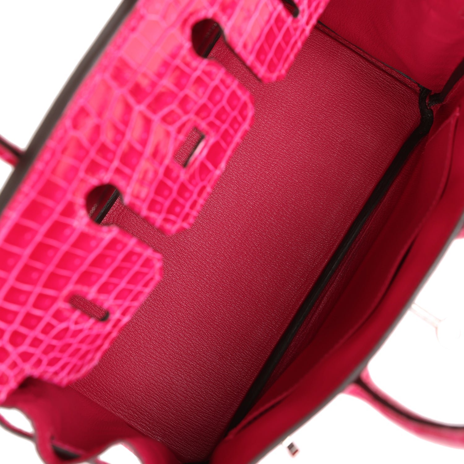 Hermes Birkin 25 Rose Mexico Shiny Porosus Crocodile Palladium Hardware