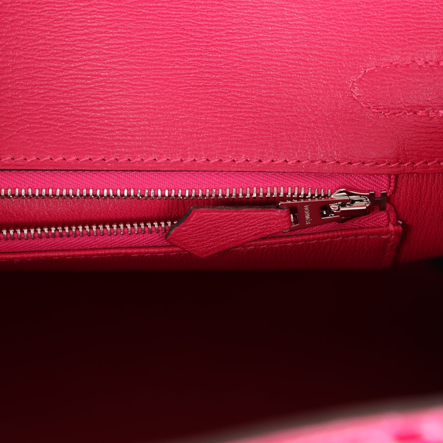 The interior is lined withRose Mexico chevre and has one zip pocket with an Hermès engraved zipper pull and an open pocket on the opposite side.