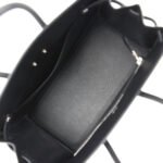This Shadow Birkin is inBlack swift leather with tonal stitching, open top, embossed details and double rolled handles.