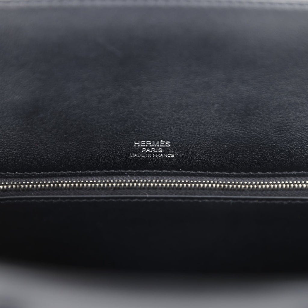 The interior is lined with Black chevre and is one zip pocket with an Hermès engraved pull and an open pocket on opposite side.