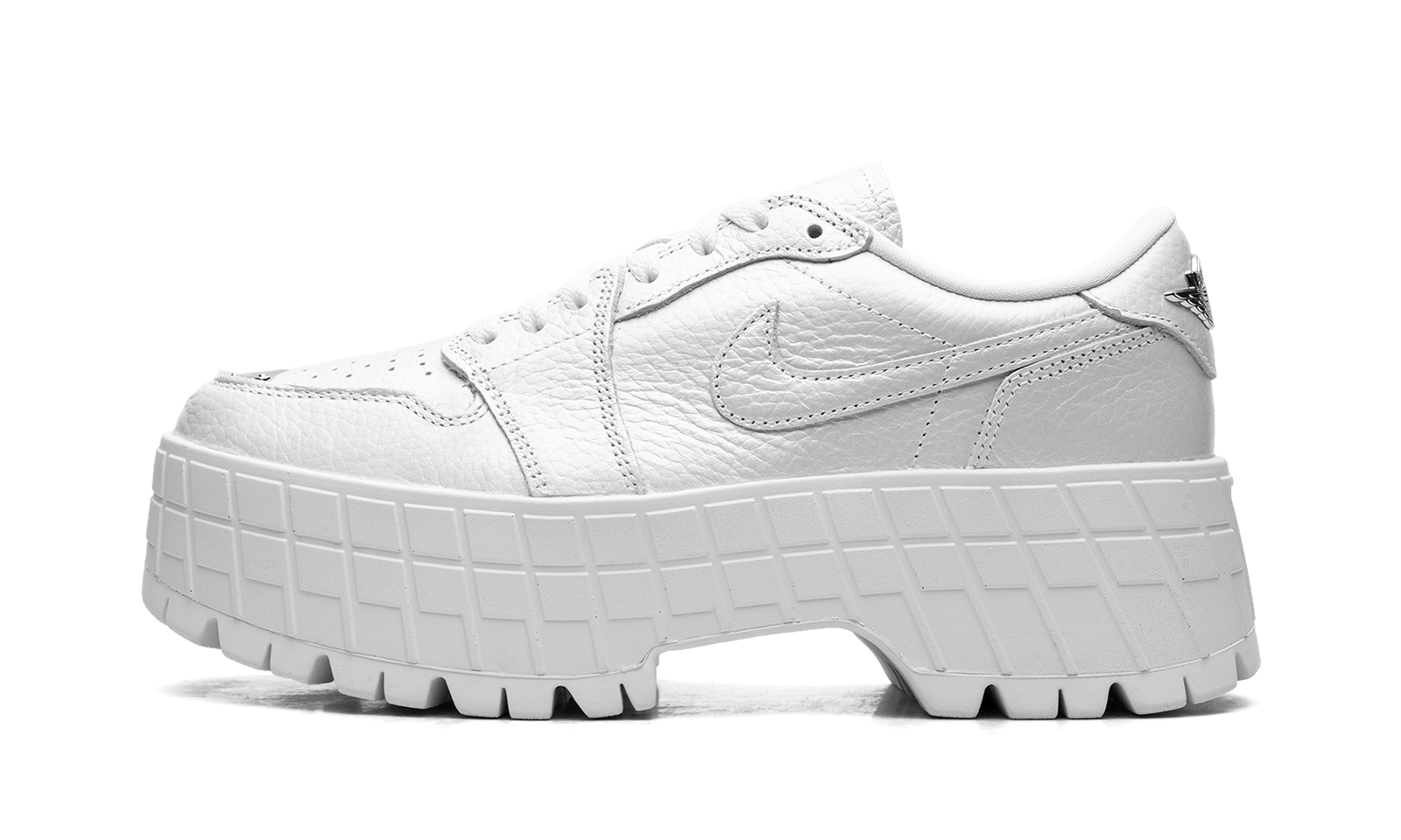 Elevate your stature with the Air Jordan 1 Brooklyn Low WMNS “White Metallic Silver.” This women’s-exclusive sneaker fuses the iconic AJ1 DNA with a bold platform boot silhouette. It features a premium White full-grain leather upper accented by sleek Metallic Silver details. The chunky foam midsole, exaggerated rubber lugs, and visible Nike Air cushioning provide height, supreme comfort, and durable traction, grounding your look in hoops heritage with a contemporary, elevated edge.