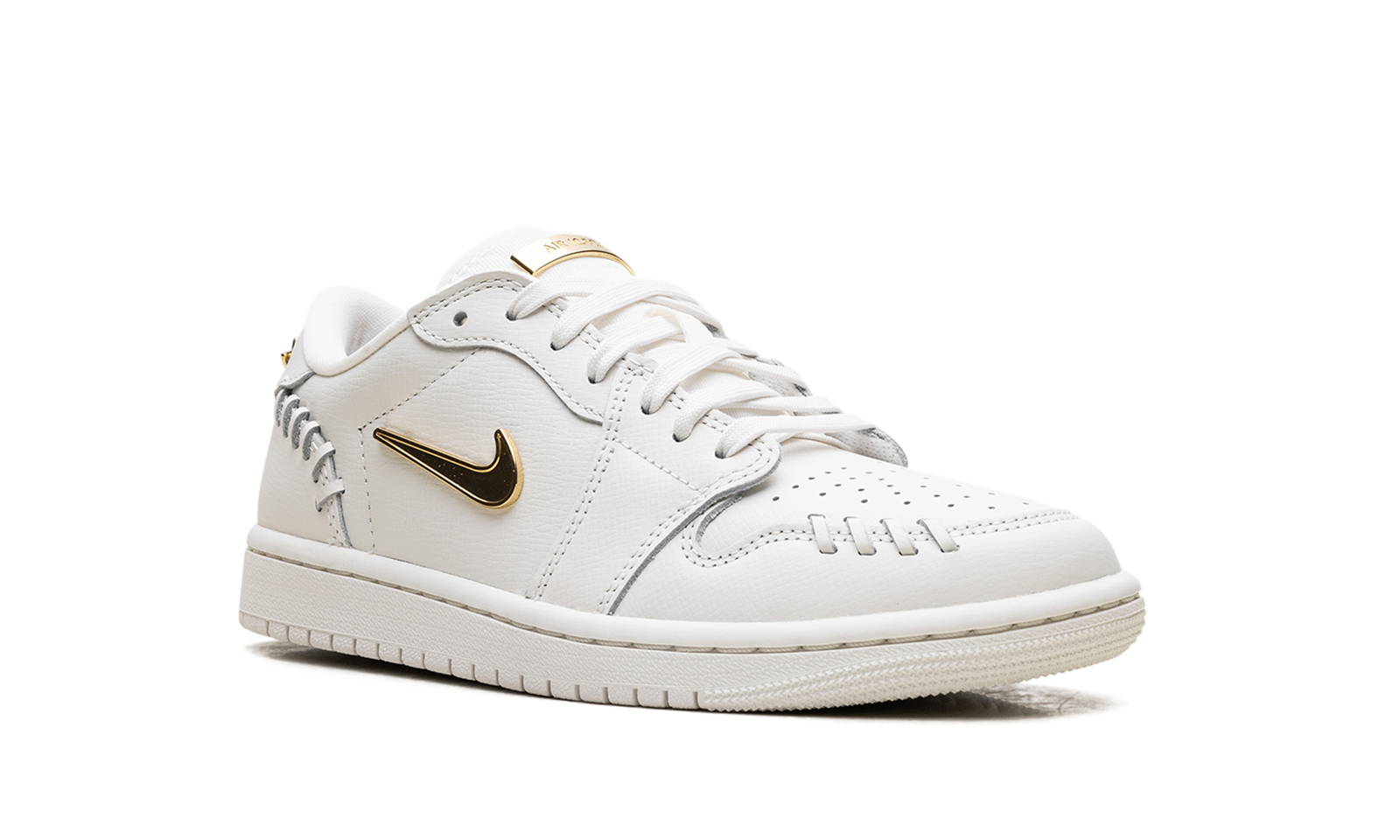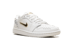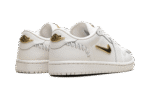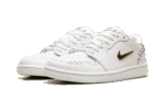 Shine with subtle luxury in the Jordan 1 Low Method of Make WMNS “Sail Metallic Gold.” This women’s-exclusive sneaker from the Method of Make series features a minimalist design elevated by lavish metallic accents. The tonal Sail leather upper is complemented by a bold, chunky stitch pattern and striking Metallic Gold details on the oversized Swoosh and branding. Equipped with encapsulated Nike Air in the heel, this shoe delivers both resilient cushioning and a high-fashion aesthetic for everyday wear.